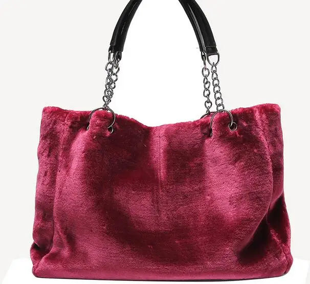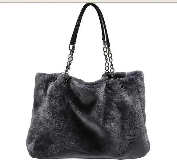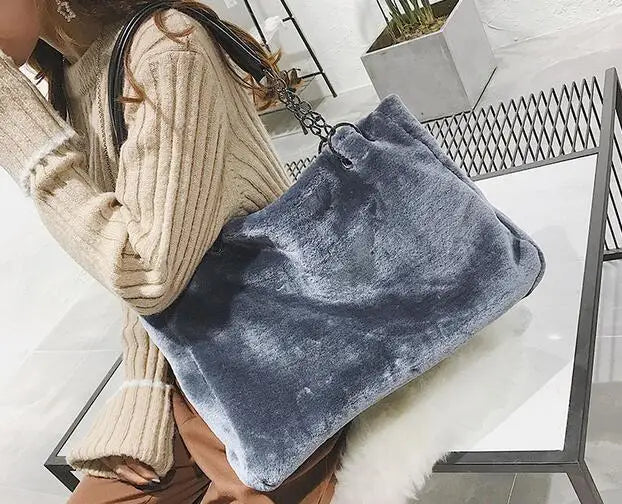 Stay cozy and fashionable with this casual shoulder bag featuring rabbit fur, perfect for the winter season.