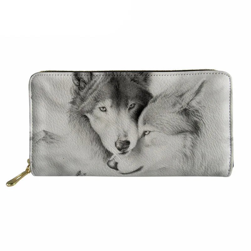 Stay stylish with this Wolf 3D print leather long wallet designed for women. It features a casual yet elegant style perfect for holding cash, ID cards, and other essentials.