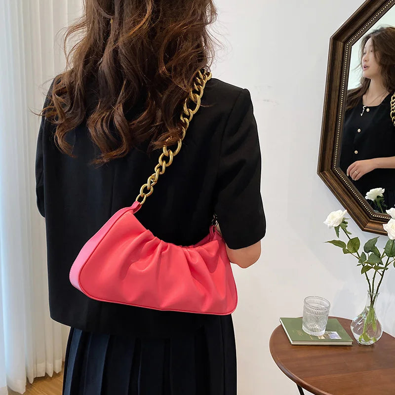 This stylish armpit bag is made of soft PU leather, perfect for evening events and special occasions. The pink pleated design adds a touch of elegance to any outfit.