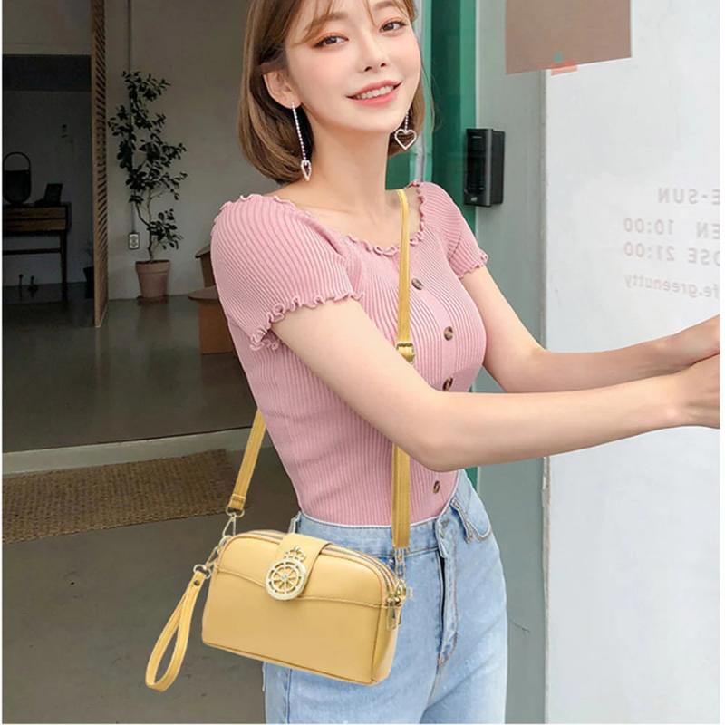 This stylish shoulder bag is crafted from high-quality Pu leather, perfect for everyday use. It features a solid color design and a horizontal square shape.