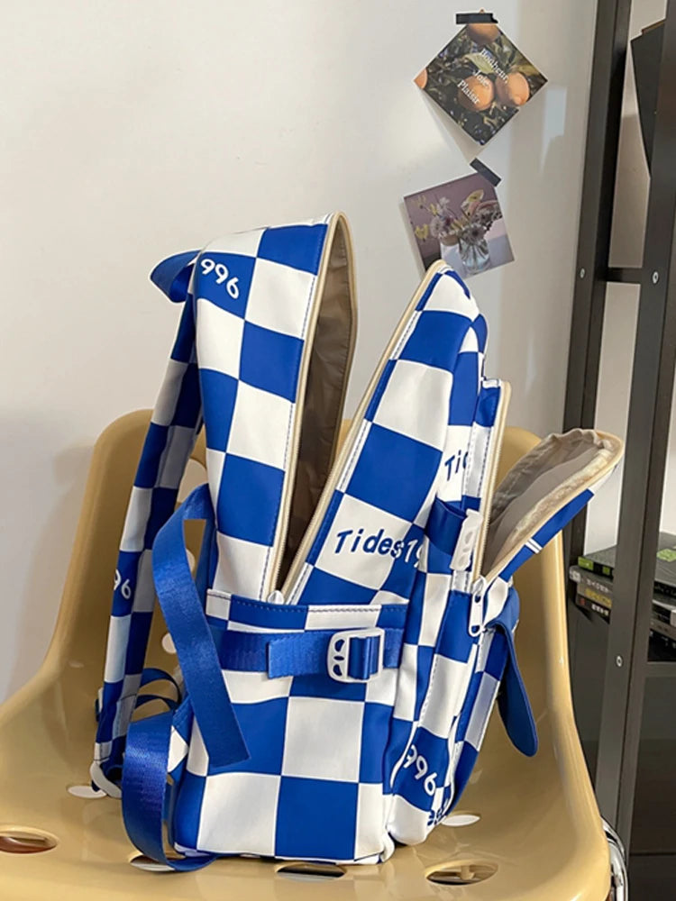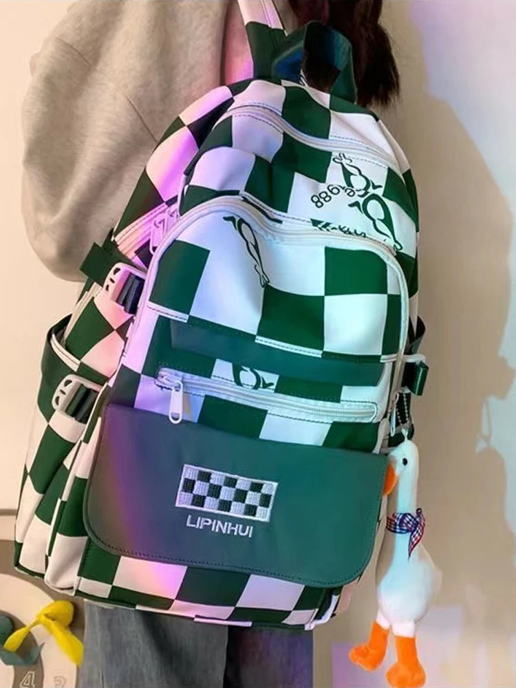 Women Backpack Checkerboard Laptop Nylon Large Capacity Stylish School Bag