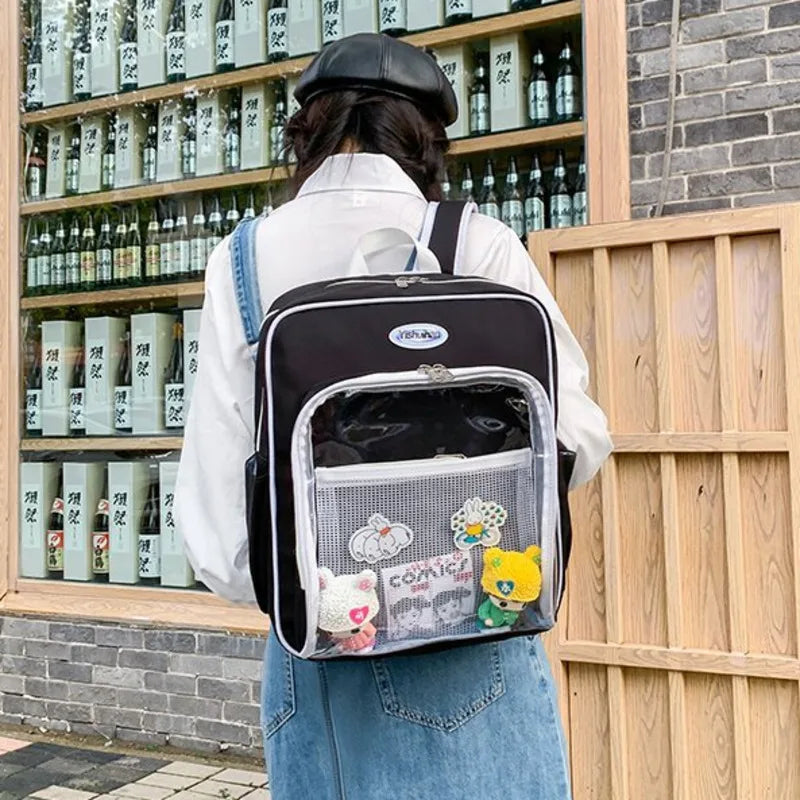 Women Backpacks ITA Bag, Clear Pocket School Bookbag