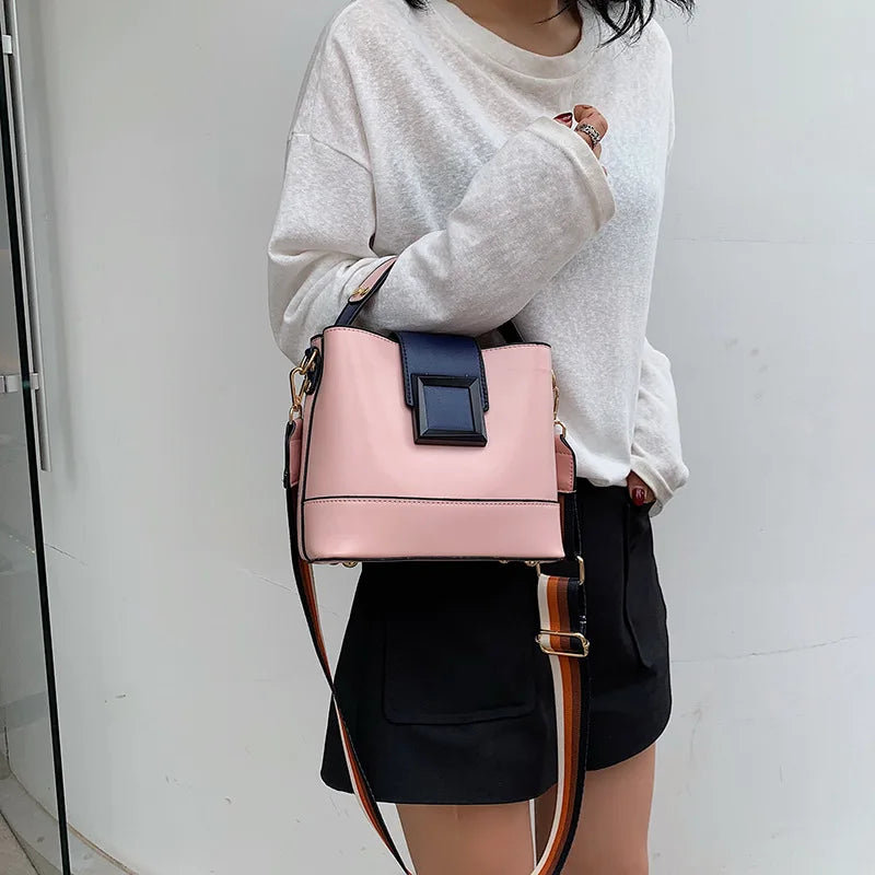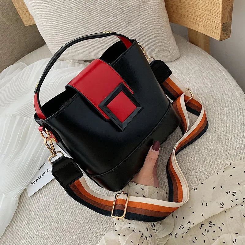 Women Bucket Bag Temperament PU Leather Messenger Bag
