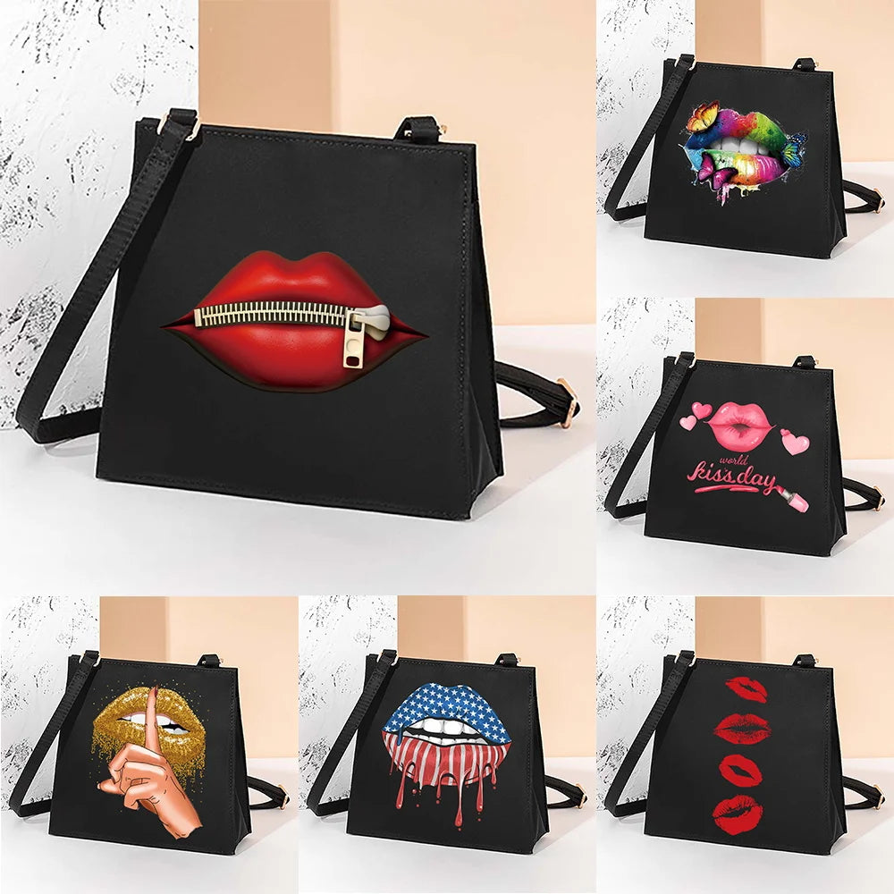 Stay stylish on-the-go with this trendy square shoulder bag that features a mouth pattern design. Perfect for carrying your essentials.