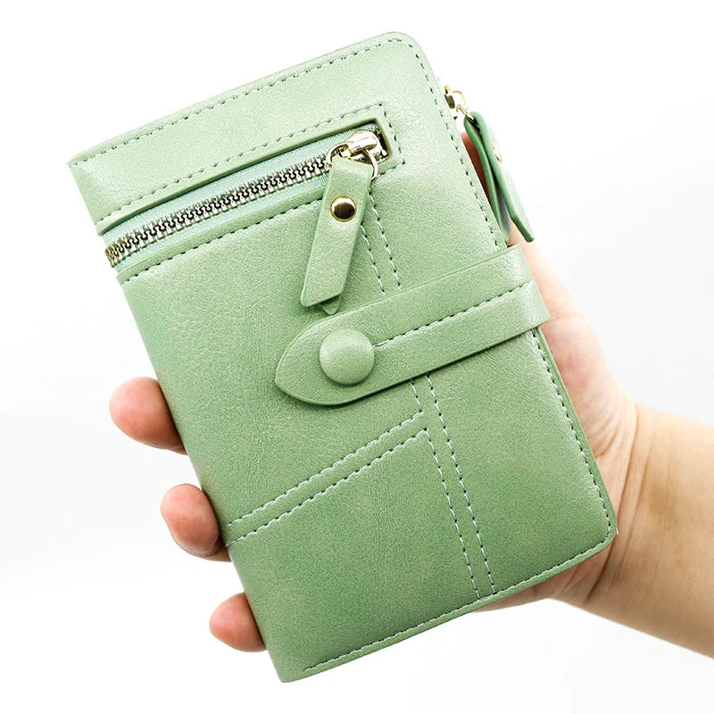 This women's short wallet is made of high-quality PU leather with a zipper closure and hasp. It features multiple compartments for money, coins, ID cards, and more, making it perfect for daily use.