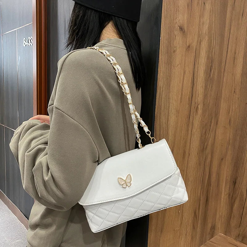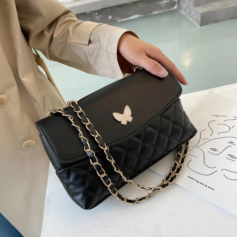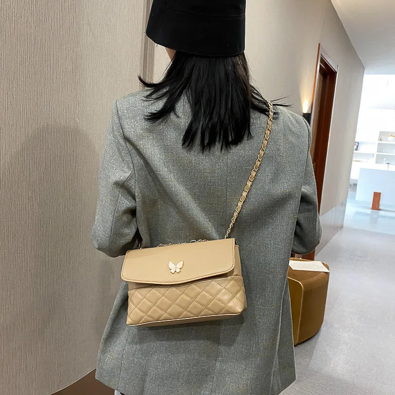 This small square bag is made of high-quality PU leather, designed for everyday use. It features a chain strap and can be worn as a crossbody or shoulder bag.