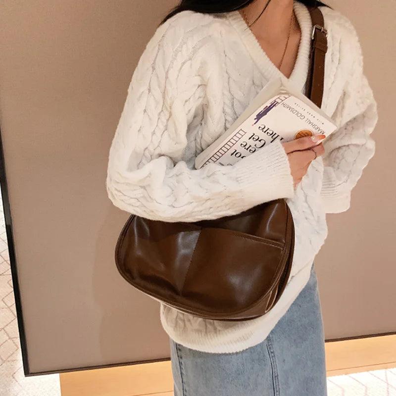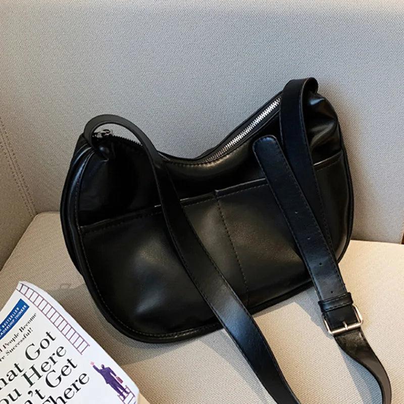 This stylish half-moon bag is made of high-quality PU leather with a spacious interior, perfect for everyday use.