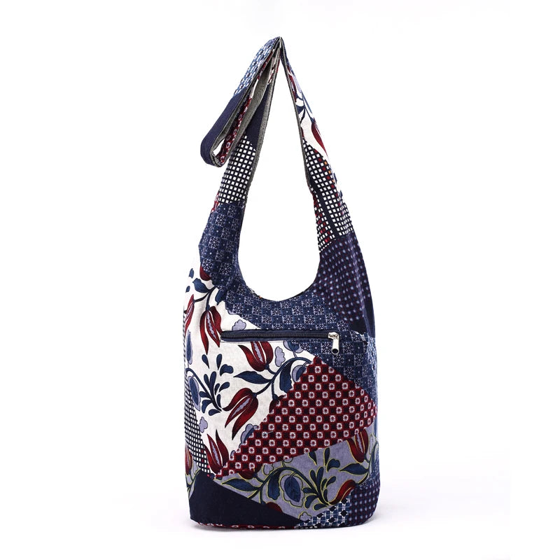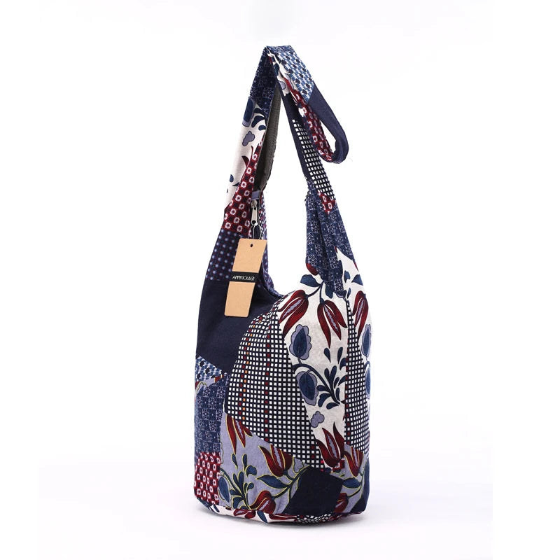 Stay stylish and organized with this versatile cotton fabric shoulder bag featuring a beautiful elephant print design. It offers a large capacity and comes with an adjustable strap for added convenience.