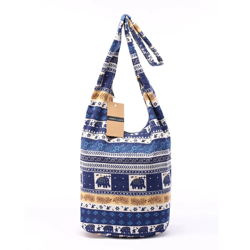Women Elephant Print Shoulder Bag Cotton Messenger Crossbody Bag