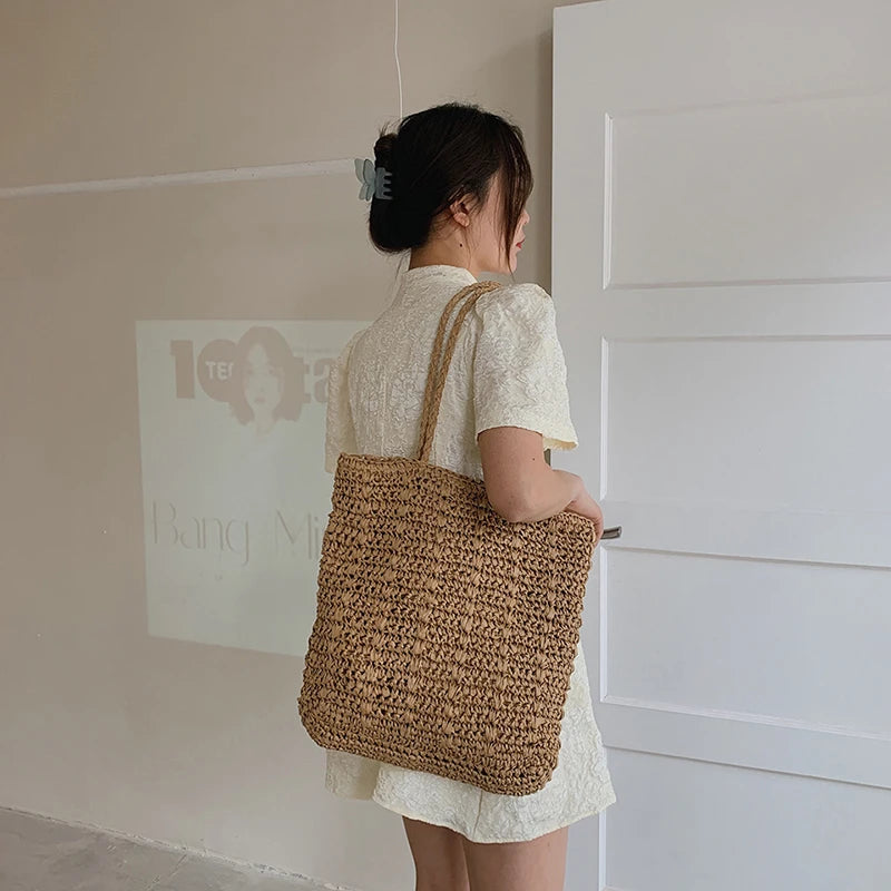 Women Large Woven Straw Beach Tote Shoulder Bag