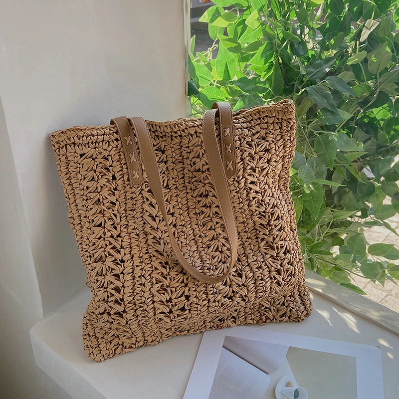 This stylish straw beach tote is perfect for summer outings or shopping. It features a woven design and spacious interior to hold all your essentials.