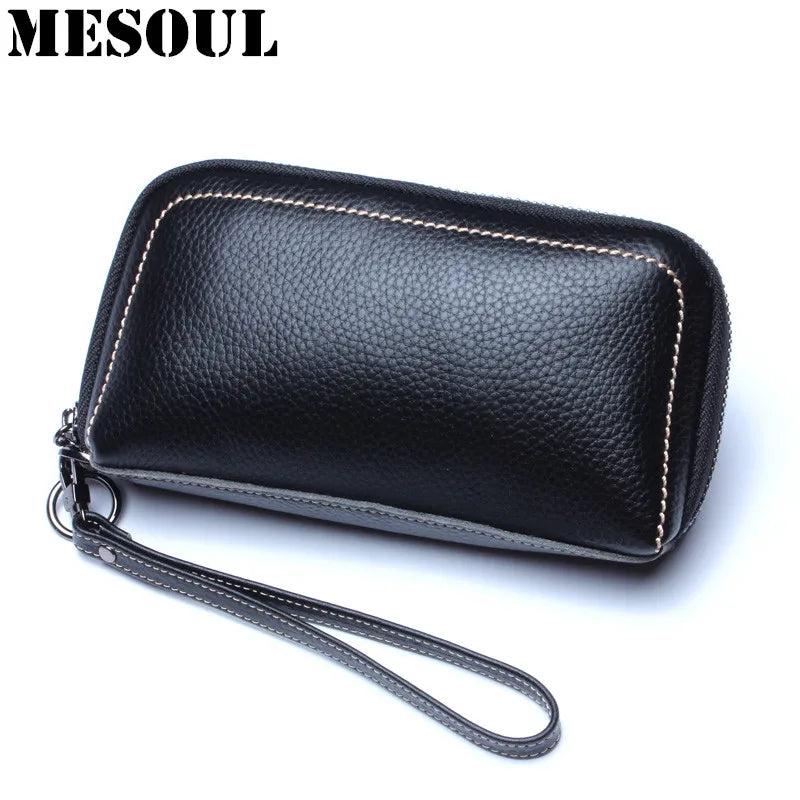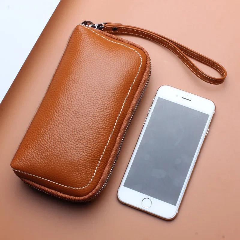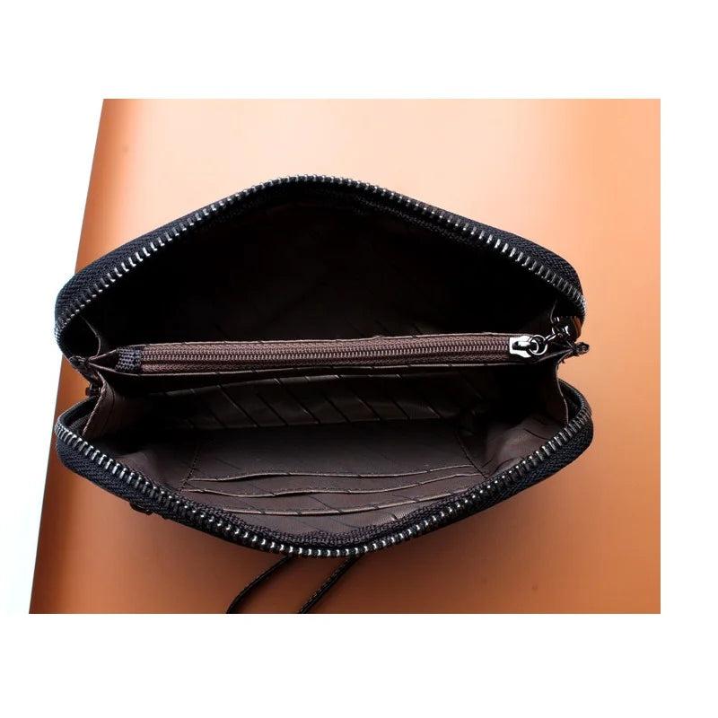 This high-quality leather clutch bag is perfect for travel and casual outings. It features multiple card slots, a money pocket, and a phone pocket for convenience.