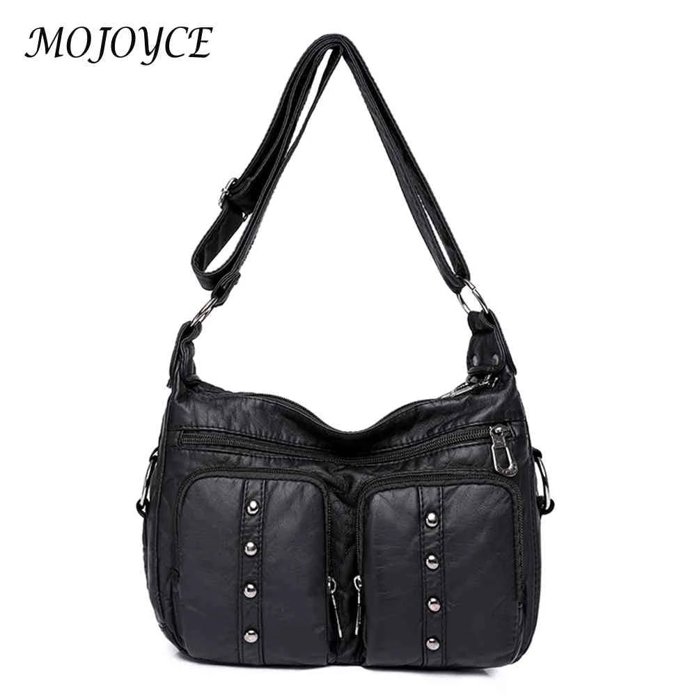 Women Messenger Bag Soft Leather Tote Multi-pocket Adjustable Strap