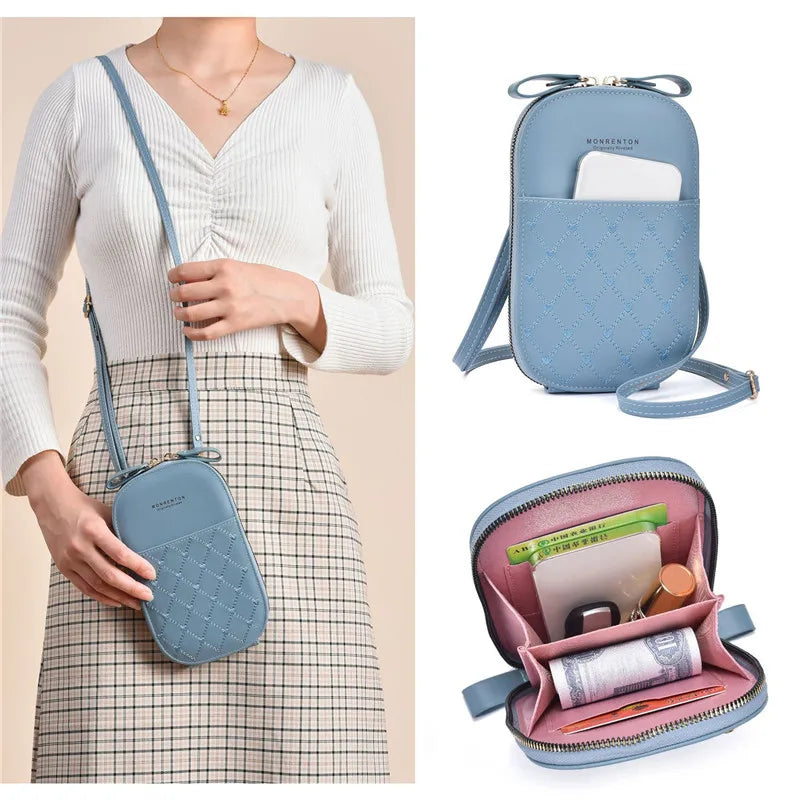 This women's light phone messenger bag is made of high-quality PU leather, perfect for carrying essentials. It can also be used as a coin purse or wallet.