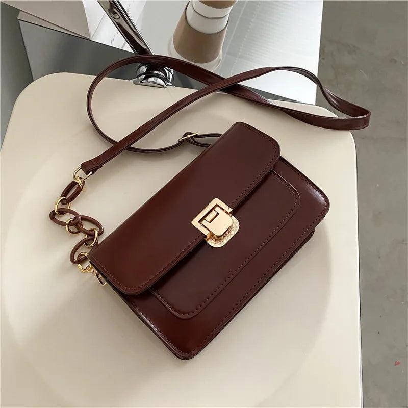 Women Saddle Shoulder Bags Chain Pu Leather Messenger Bags Retro Purse