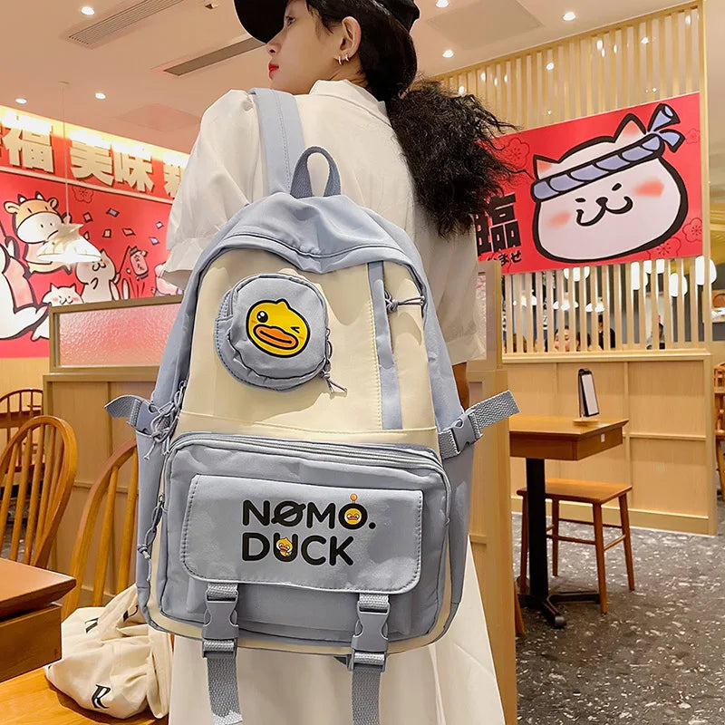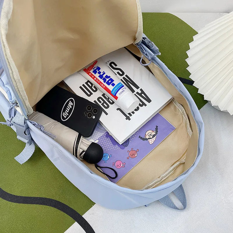 Women School Bags for Girls Panelled Backpack Student Nylon Bookbag