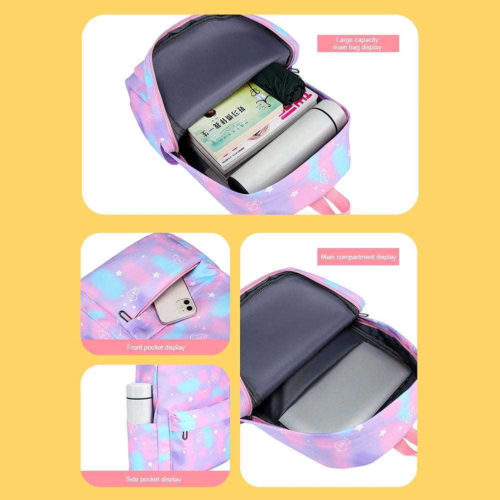Women Schoolbag + Lunch Bag + Pen Bag Laptop Backpack