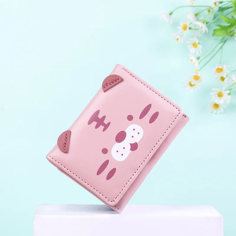 Women Short Thin Tiger and Pig Small Wallet Student Three-fold Coin Purse