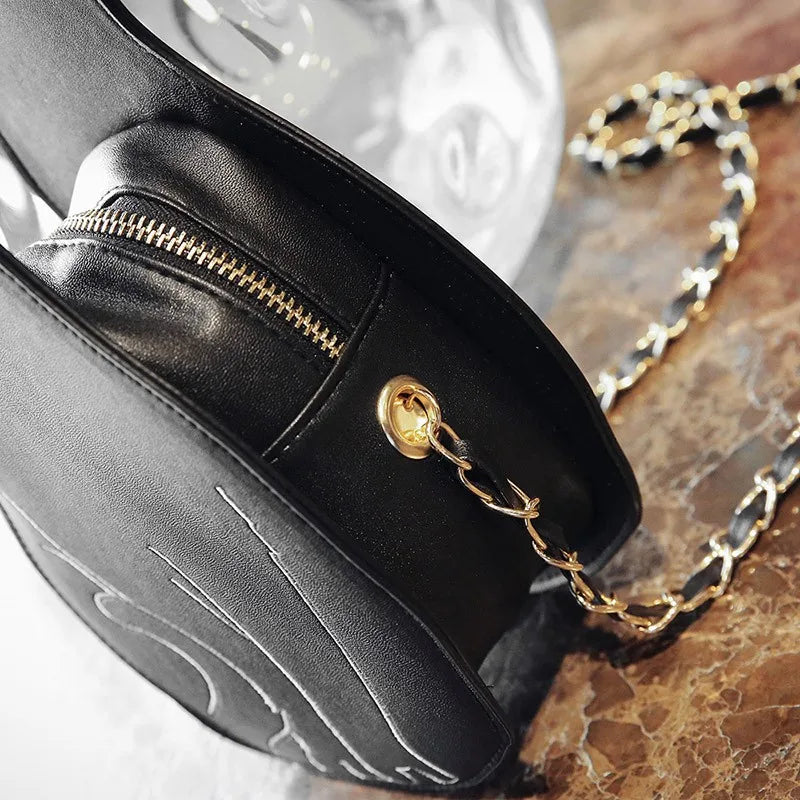 This stylish cat chains messenger bag is made of high-quality PU leather, perfect for daily use. The harajuku design adds a trendy touch to your outfit.