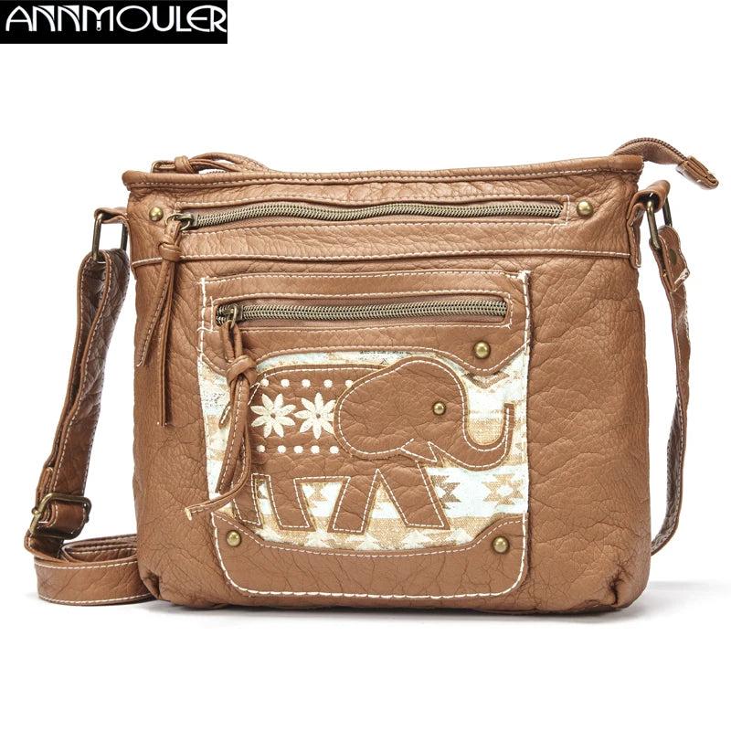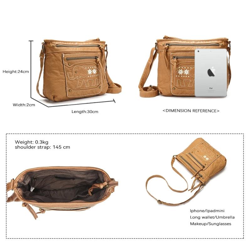 Women Shoulder Bag Leather Crossbody Elephant Patchwork Messenger Purse