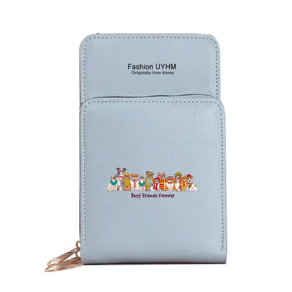 Description:This women's shoulder bag is made of PU leather with a cute dog print design. It features a touch screen mobile phone compartment and is waterproof for added protection.Features: Made of high-quality PU leather Features a touch screen mobile phone compartment Waterproof design for added protection Includes multiple card slots...