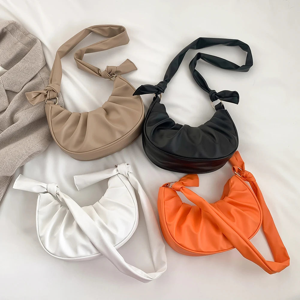 Women Shoulder Bag Solid Hobos Shopping Bag PU Leather Cloud Pleated