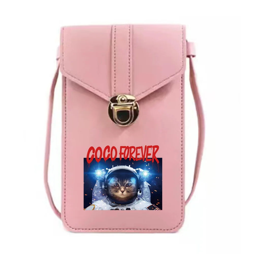 Stay stylish and organized with this trendy crossbody bag. Made of high-quality PU leather, it features an astronaut print design. The bag includes a touch screen cell phone pack, card holder, and mobile phone compartment.