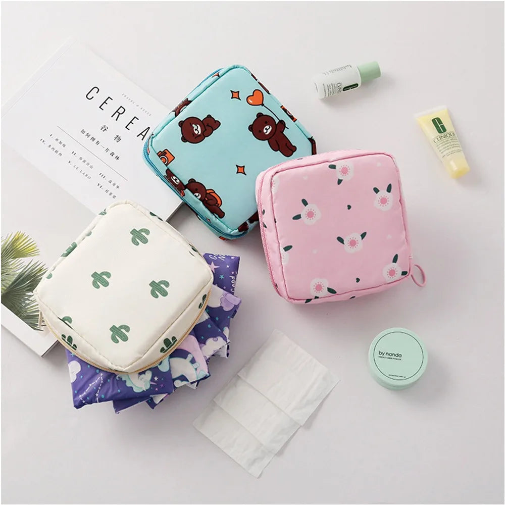 Women Small Cosmetic Bag Set Zipper Girls Mini Sanitary Napkins Makeup Lipstick