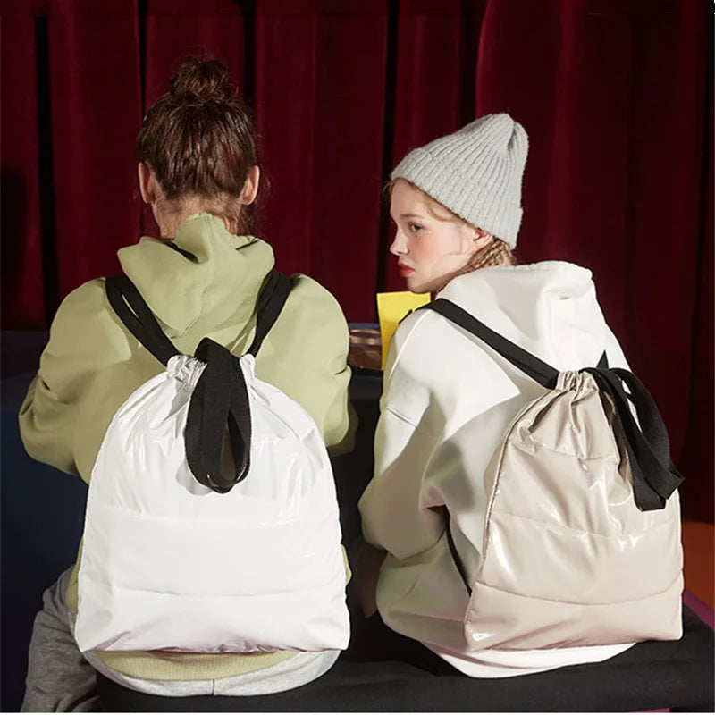 Women Soft Winter Padded Down Backpack Large Capacity Shoulder School Bag