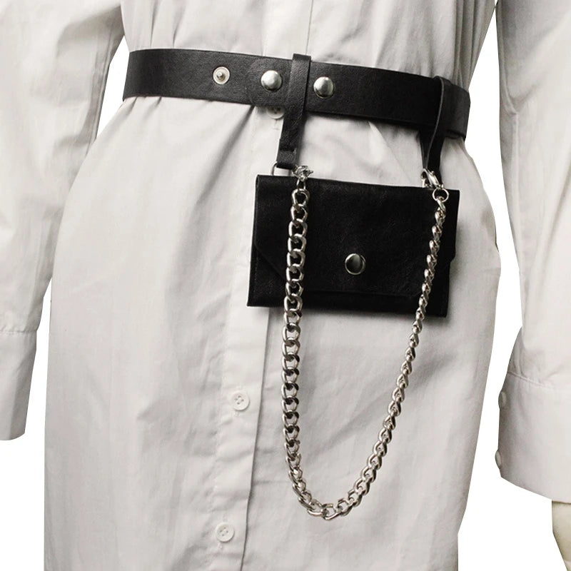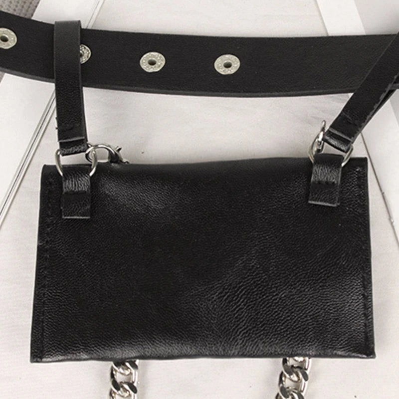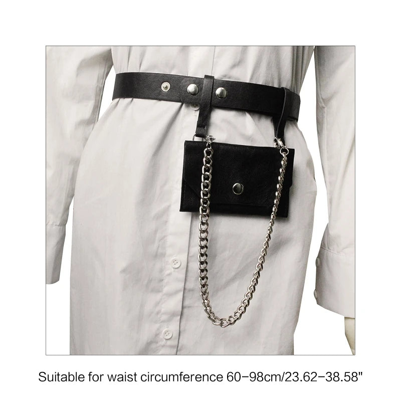 Women Waist Belt Bag with Metallic Chain Casual PU Leather Phone Purse