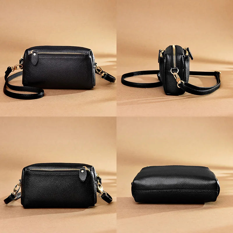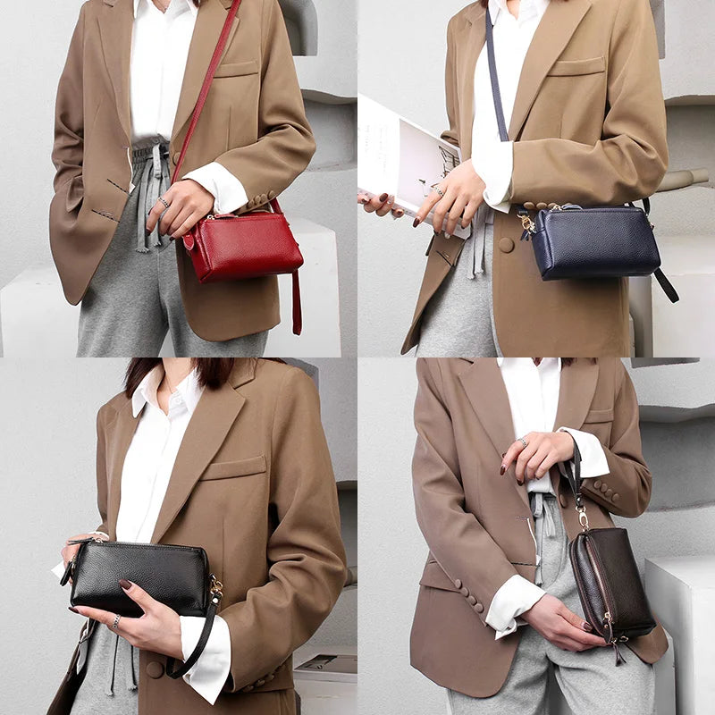 Stay organized in style with this compact leather clutch bag that features multiple card slots and a diagonal design. Perfect for carrying your essentials on the go.