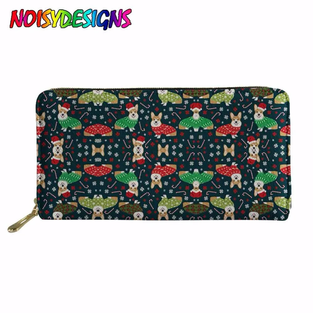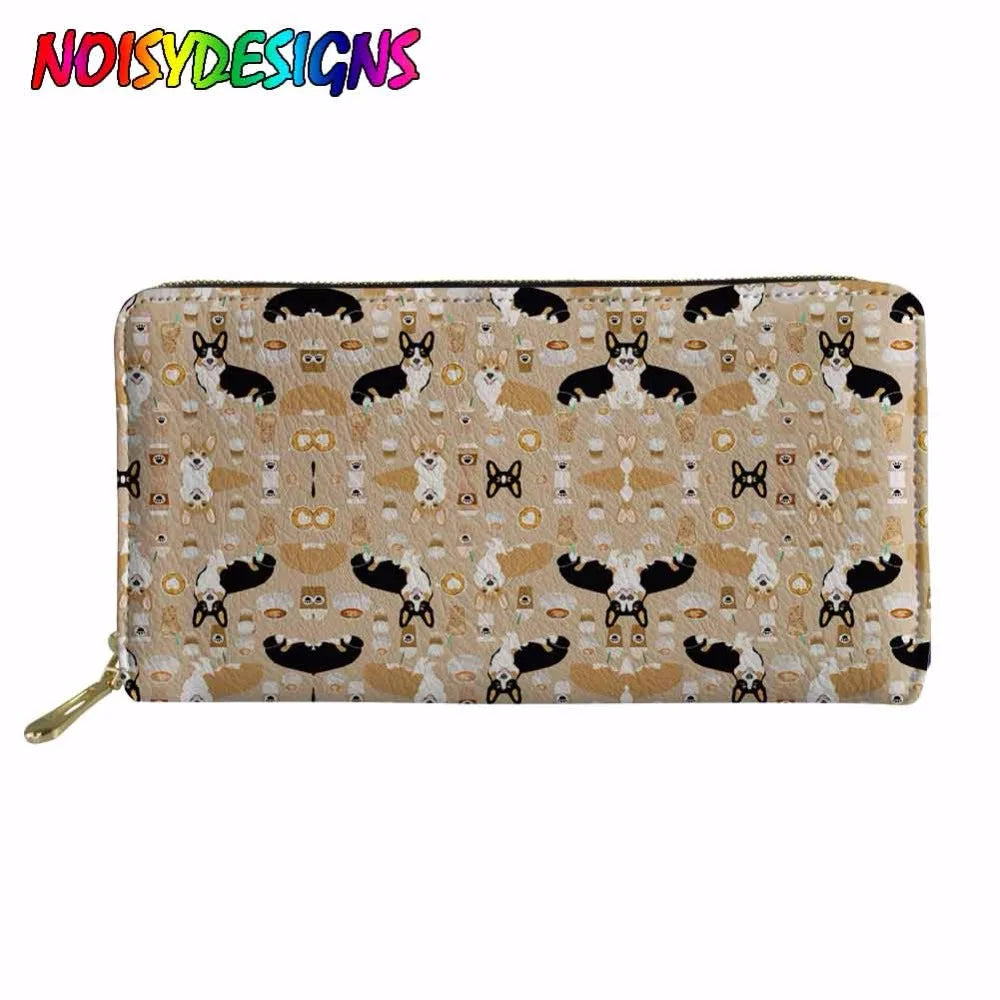Women Wallets Lady Purse Long Wallet Corgi Glasses Mint Orange Prints Clutch