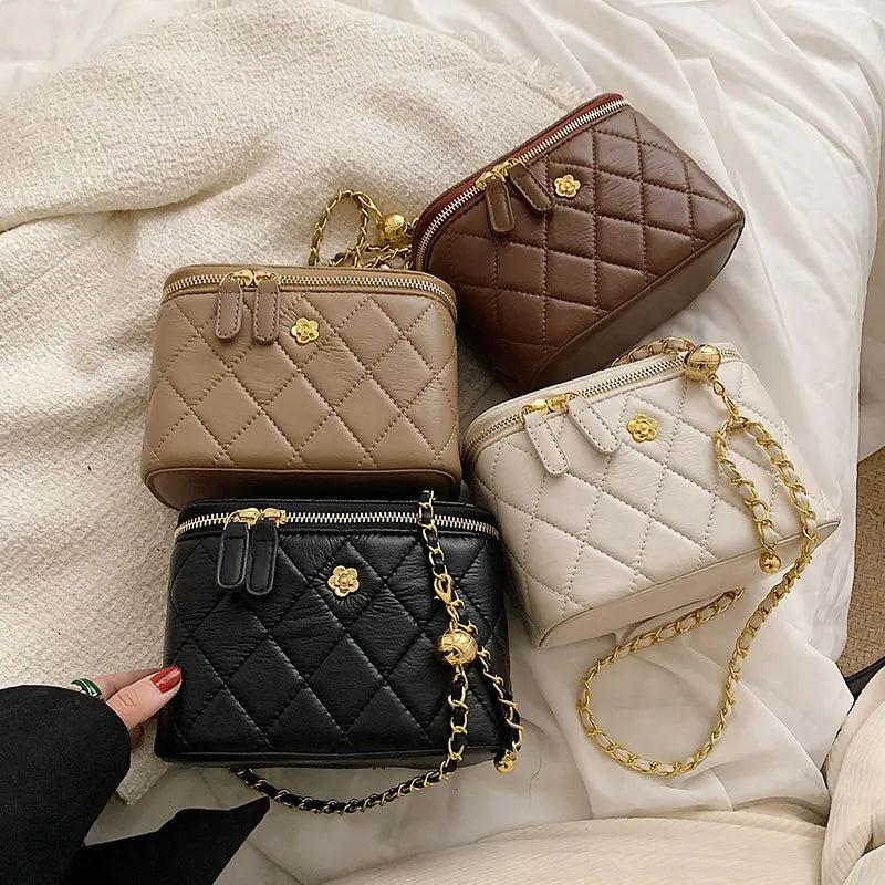 Women's Bucket Chain Shoulder Bag PU Leather Messenger Bag