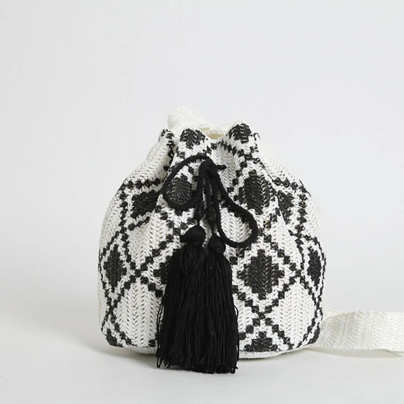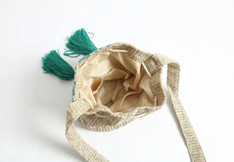 Women's Bucket Straw Bag with Tassel Shoulder Bag
