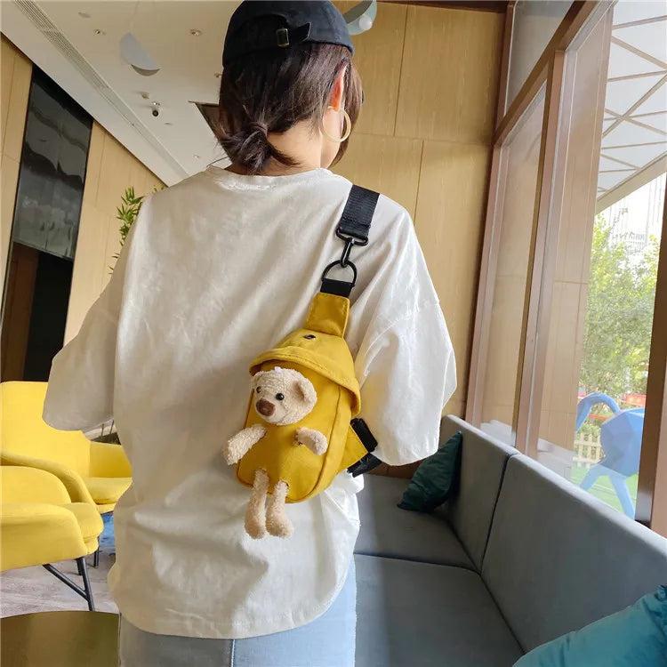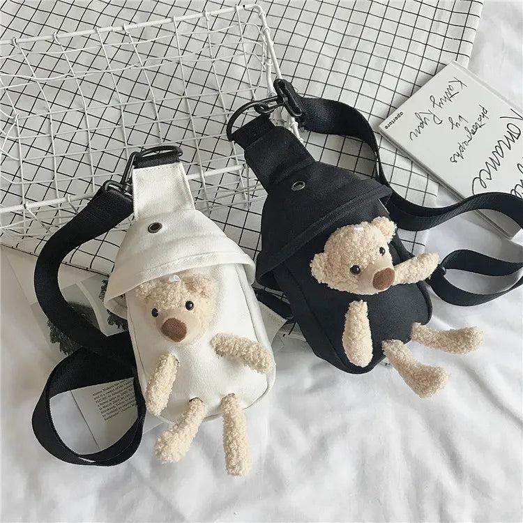 Women's Canvas Bear Shoulder Bag Crossbody Purse Phone Bag