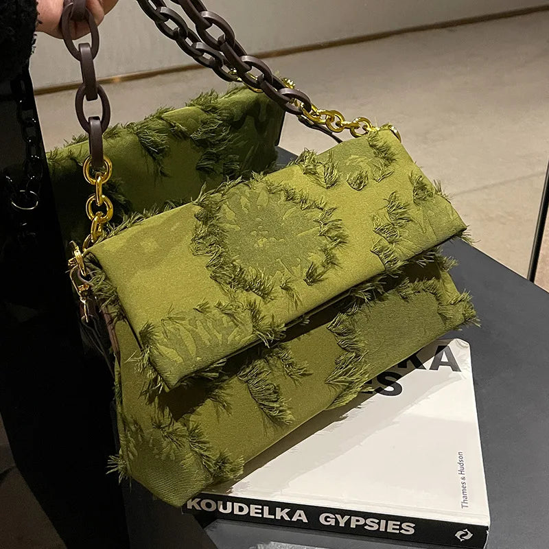 This versatile crossbody bag features a high internet red design and chain strap. Ideal for daily use or special occasions.