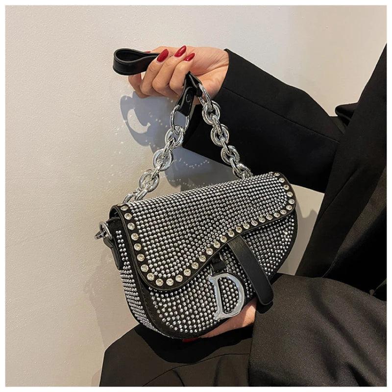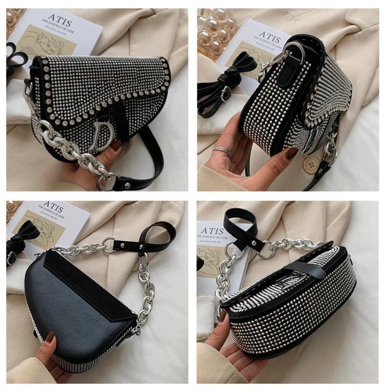 Elevate your style with this high-grade saddle bag featuring a thick chain and bright diamond design. Perfect for any occasion.