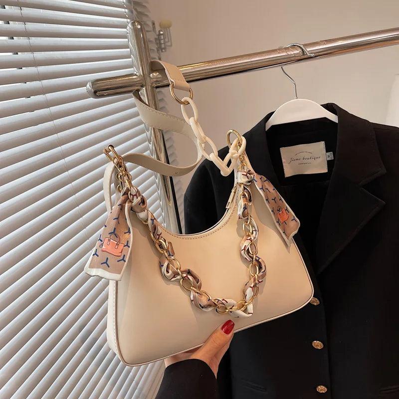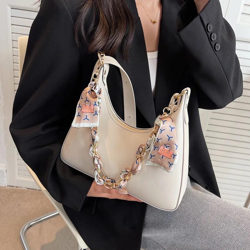 Women's Chain Silk Scarf Shoulder Bag
