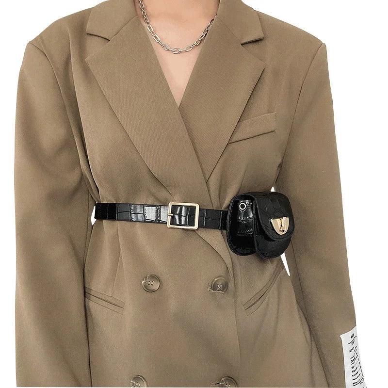 Women's Chain Waist Bag with PU Leather Belt and Wallet