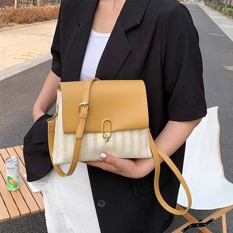 Women's Contrast Woven Crossbody Bag Envelope Shoulder Square Bag WLHB2360