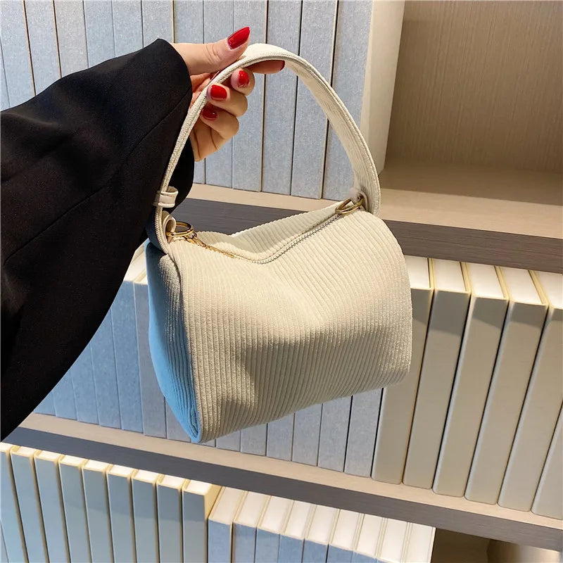 Stay stylish with this versatile corduroy bag that features a solid striped design. Perfect for everyday wear, this shoulder messenger bag can be worn as a crossbody bag for added convenience.