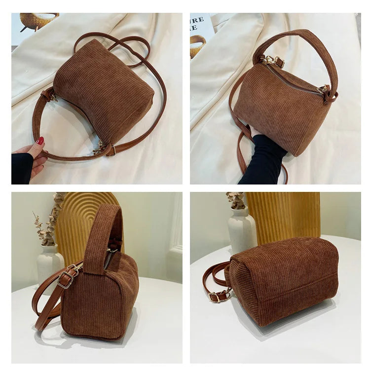 Women's Corduroy Bag Shoulder Messenger Boston Tote Crossbody Bag