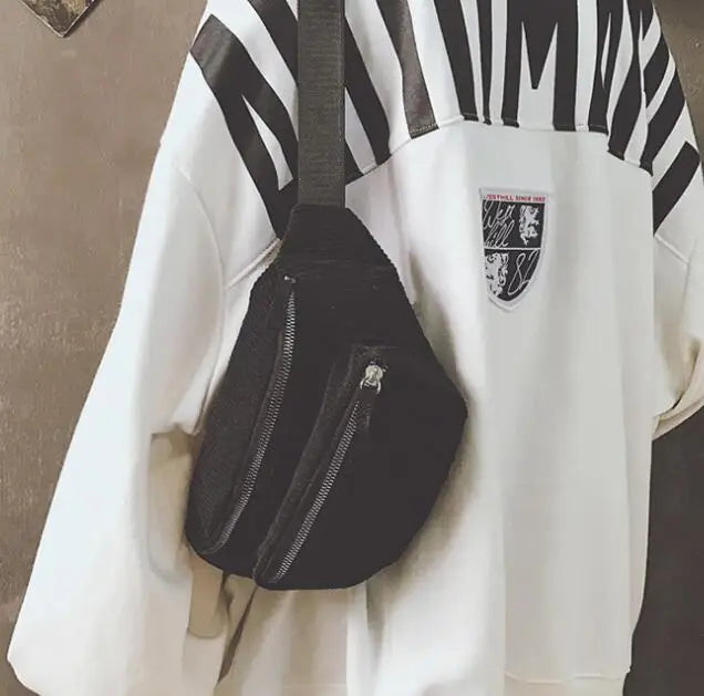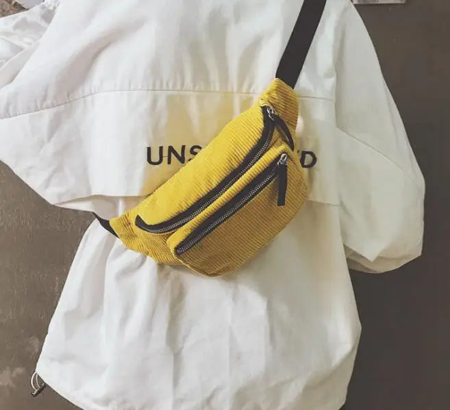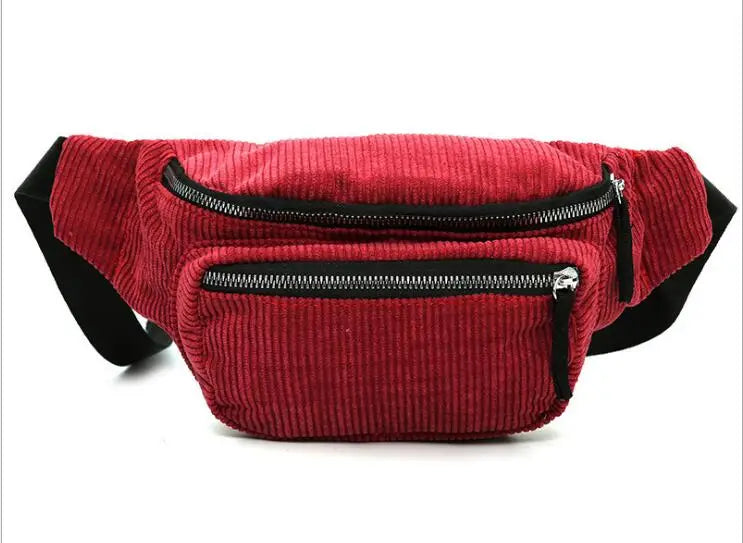 Stay stylish and hands-free with this trendy corduroy waist bag. Perfect for casual outings or running errands.