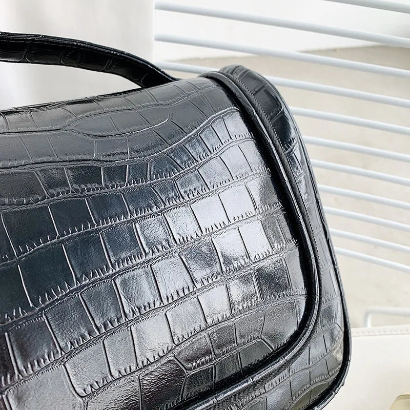 Stay organized on-the-go with this stylish crocodile pattern makeup storage bag. Made of durable PU material, it features multiple compartments for easy access to your cosmetics.