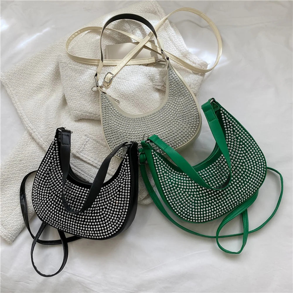 Women's Crossbody Bag Underarm Bag with Diamonds