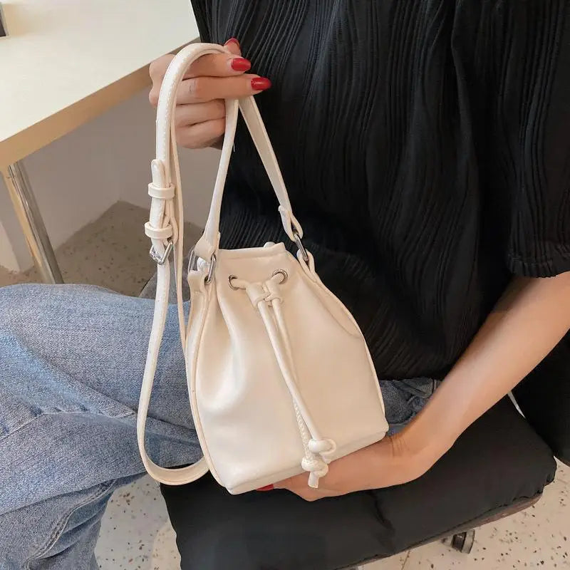 Women's Drawstring Bag Textured Shoulder Messenger Bag