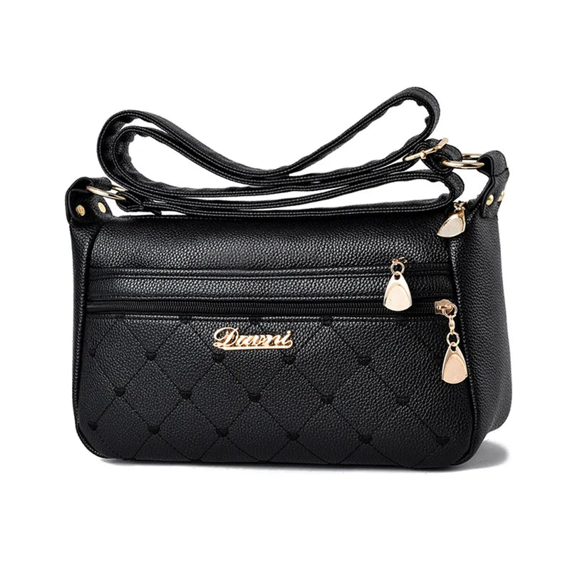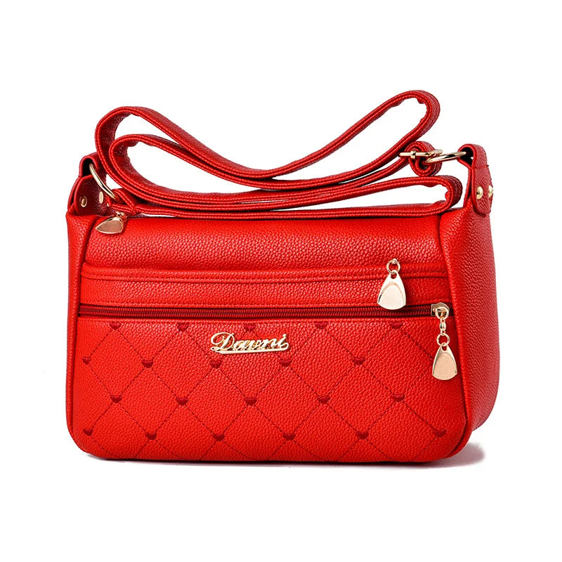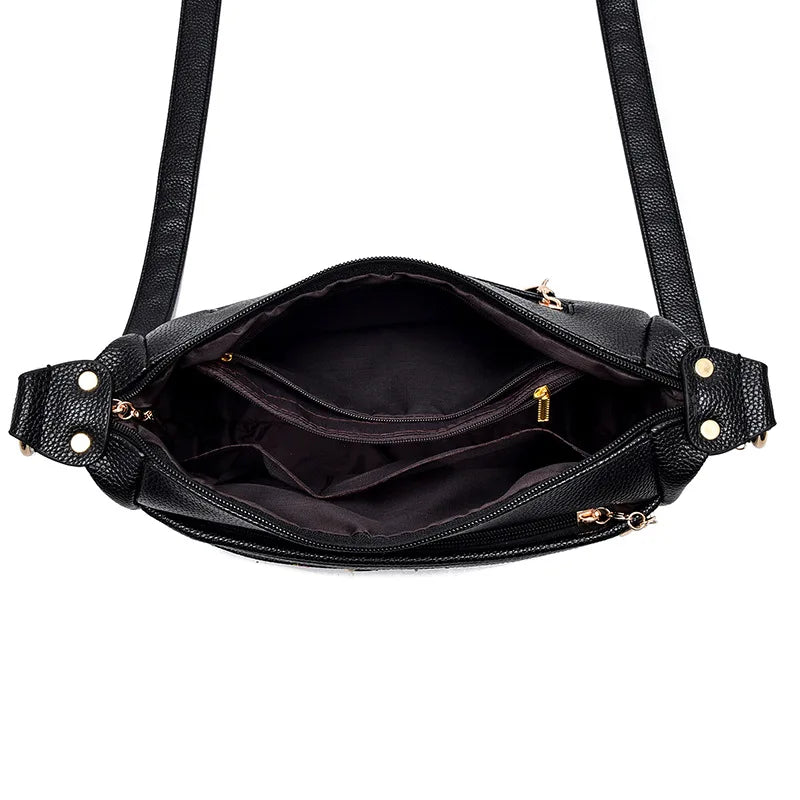 Women's Embroidery Thread Shoulder Messenger Bag Soft Leather Multi-layer Bag