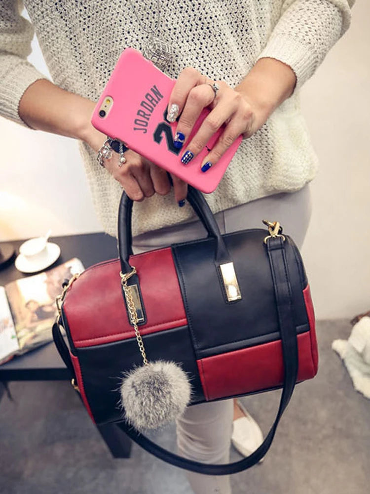 This hand-held bag features stylish European and American stitching with a single shoulder slanting contrast design.