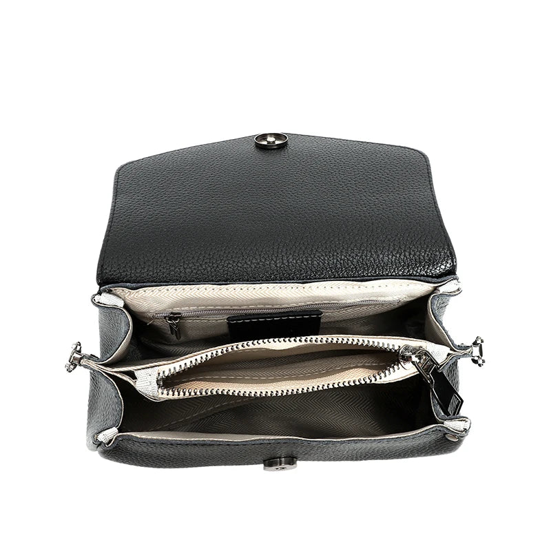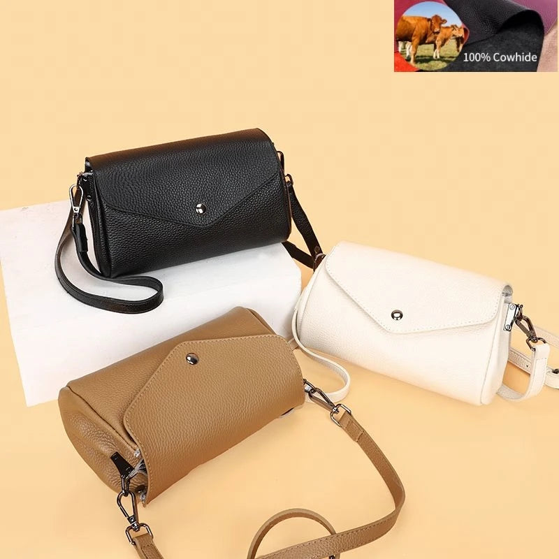 Elegant and practical women's leather shoulder bag made of cowhide. Features a spacious internal zippered compartment for secure storage.