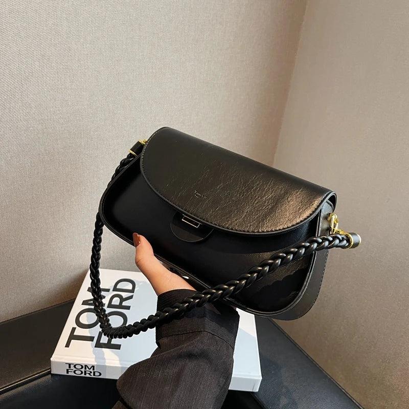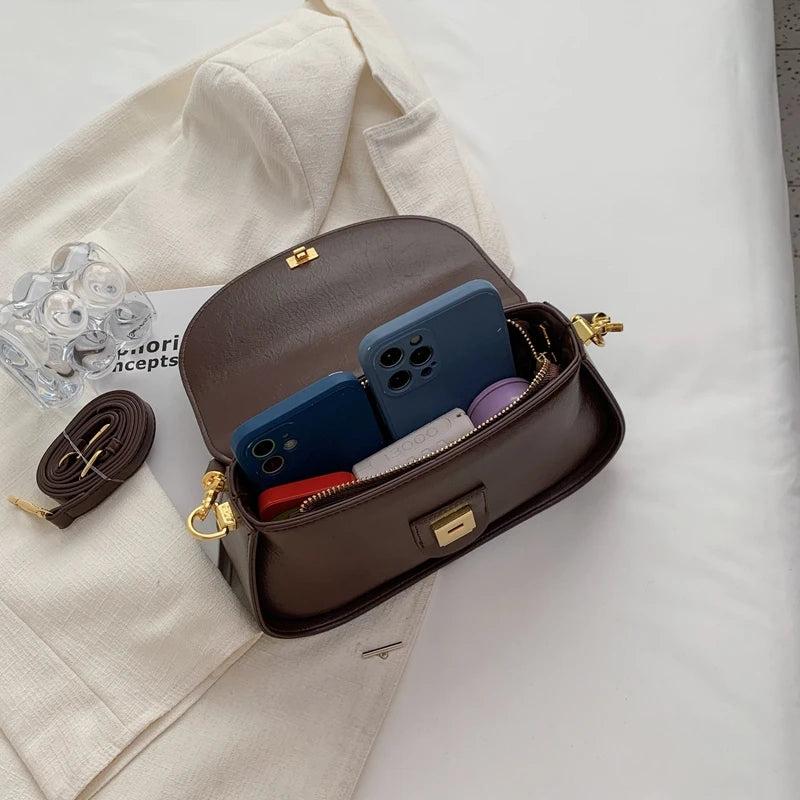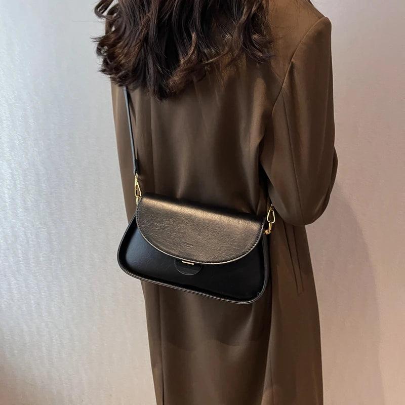 Women's leather shoulder bag solid-color crossbody bag